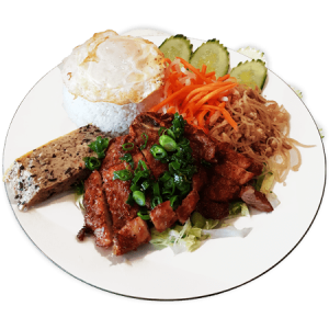Broken rice with shredded pork, grilled ribs, pork loaf and fried egg. Available 11:30am-8:30pm